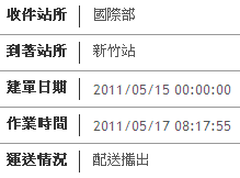 確認好時已經是星期六的晚上,也是當天就發貨了;大陸的運輸業似乎比較苦命,工作時間好長喔~~