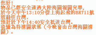 原本我是預計星期一才能報關,結果,星期天就收到訊息,說是已經報關完畢,下午就可以到台灣