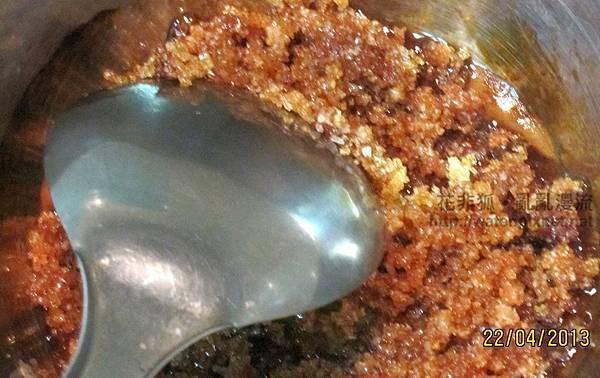 首先要炒糖,鍋子太小,糖太多,有點來不及炒;媽媽還進來問,我是不是又煮焦東西了